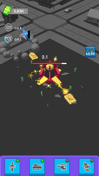 W dolnej części gracz znajdzie panel kontrolny, gdzie będzie mógł kupować myśliwce, pojazdy i ulepszenia.